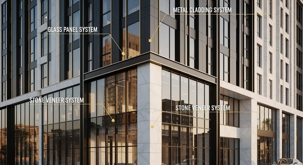 Vorhangfassadensysteme haben die Gestaltung von Gebäudeaußenwänden revolutioniert. Früher verwendeten Bauherren hauptsächlich Metall und Glas. Heute stehen ihnen mehr Materialien und Gestaltungsmöglichkeiten zur Verfügung. Vorhangfassadensysteme tragen zur Wärmedämmung und Energieeinsparung bei. Einige nutzen sogar Solarenergie. Sie sind ein wichtiger Bestandteil moderner Gebäude.